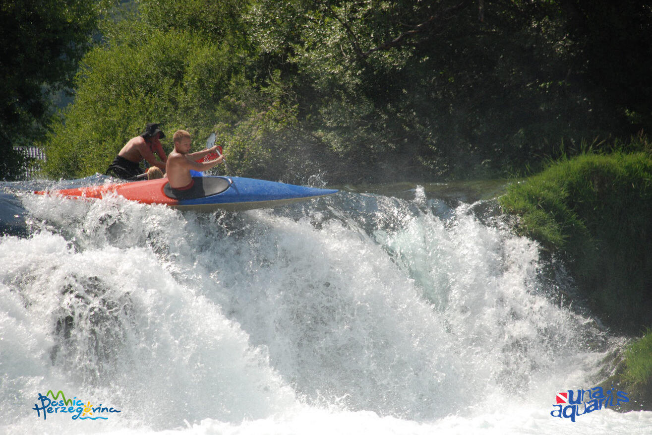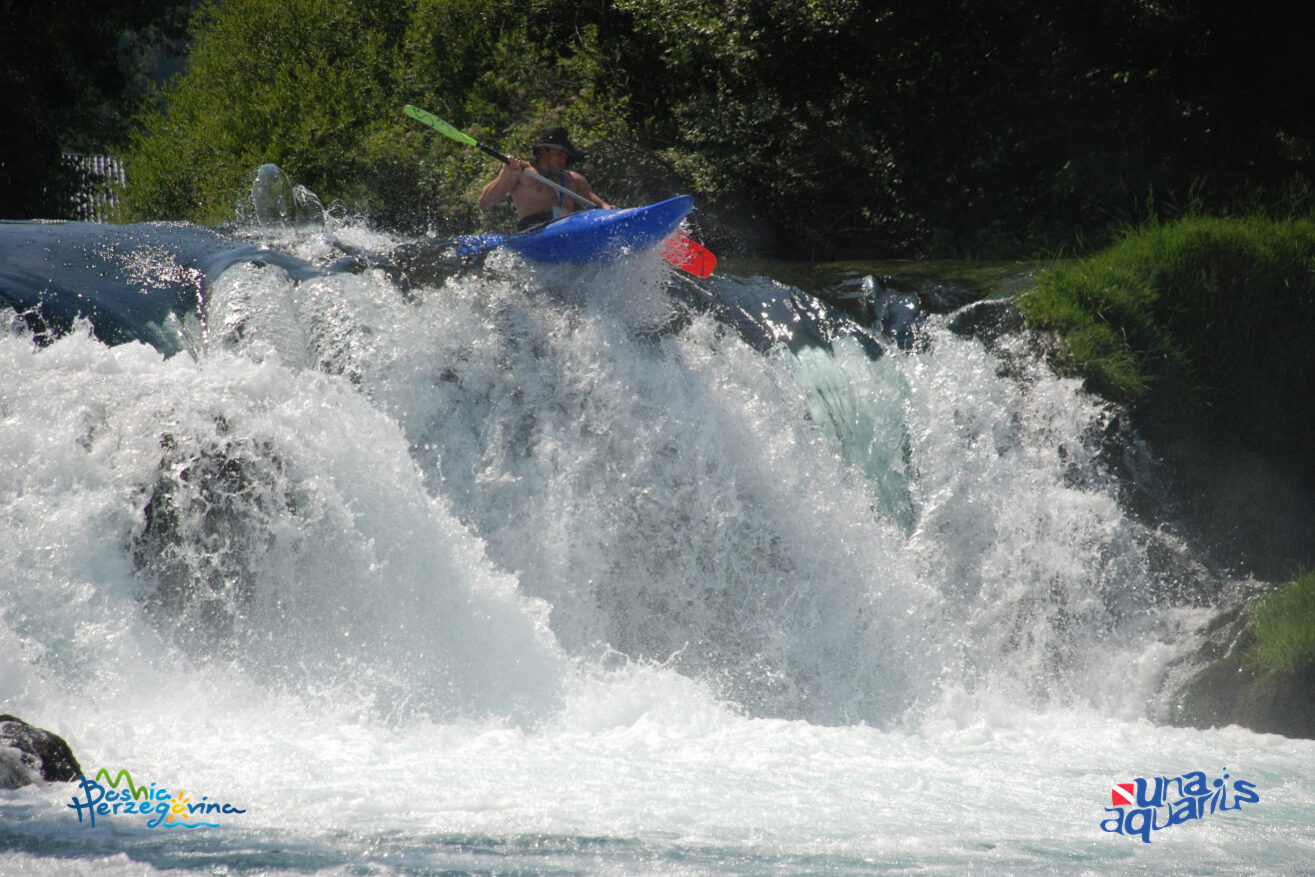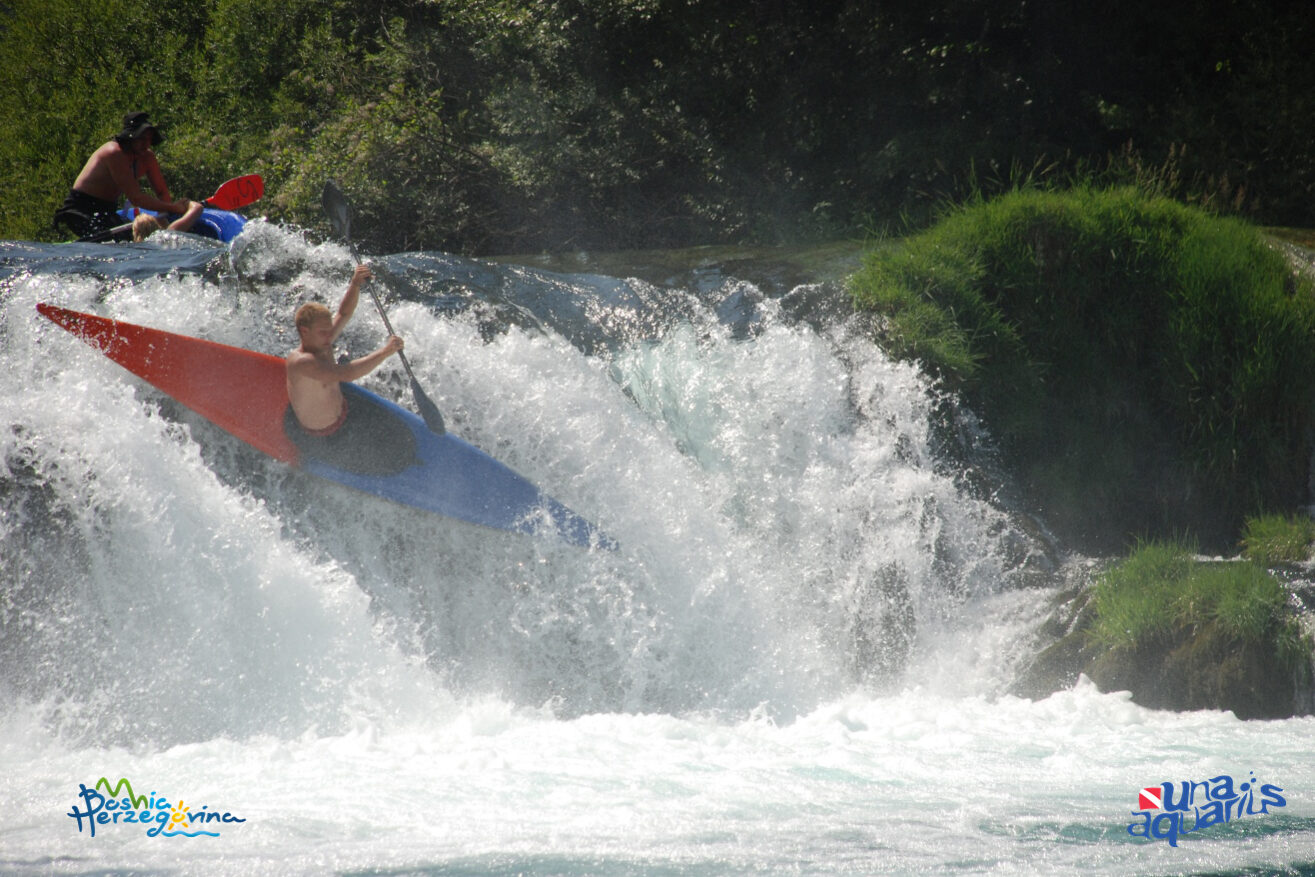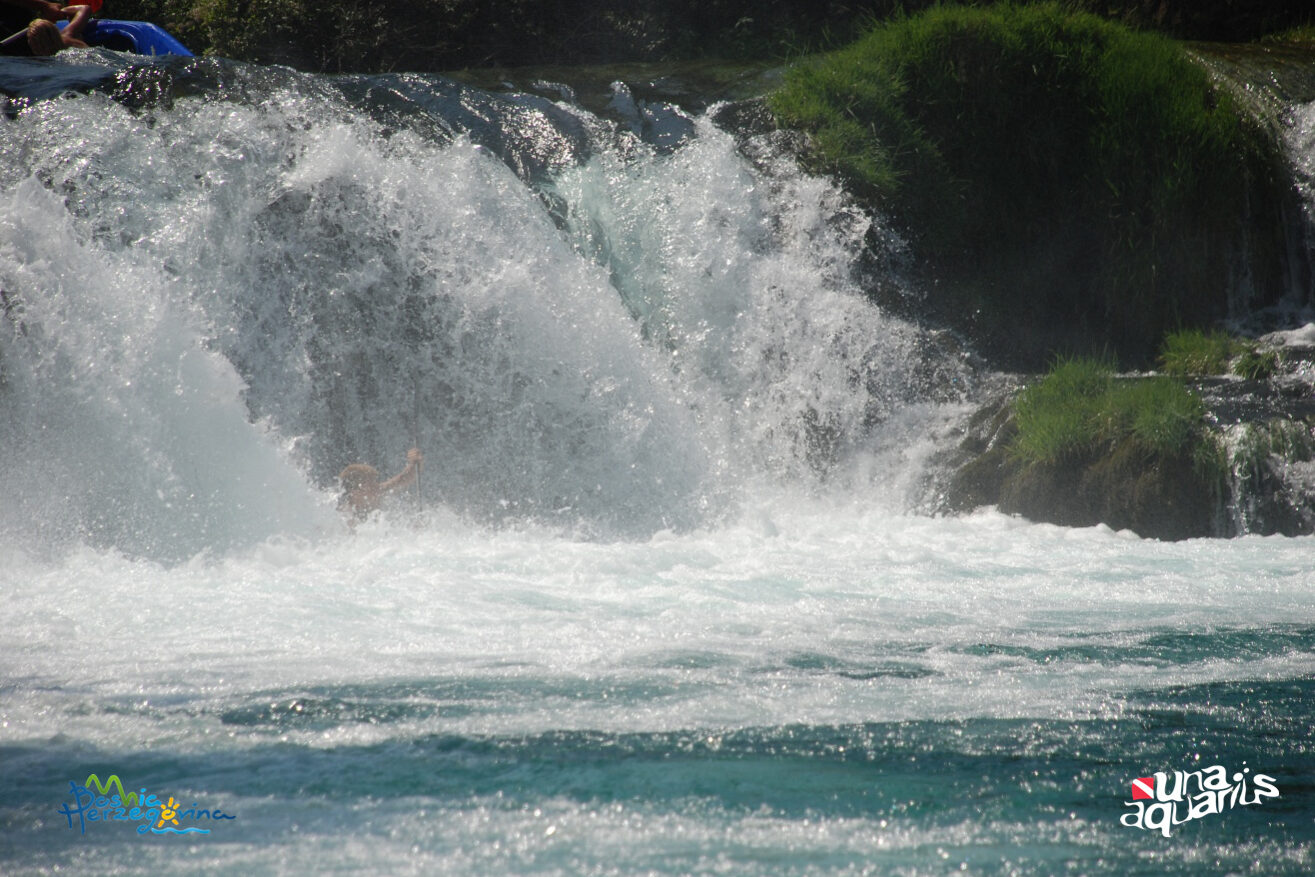 The starting point is located beneath the 23,5 meters high Štrbački buk, and the path moves through the deep canyon, untouched nature with numerous waterfalls and unpredictable waves, who take length of 7,5 kilometers, all the way to our camp in Loskun, on the very edge of the Una canyon.